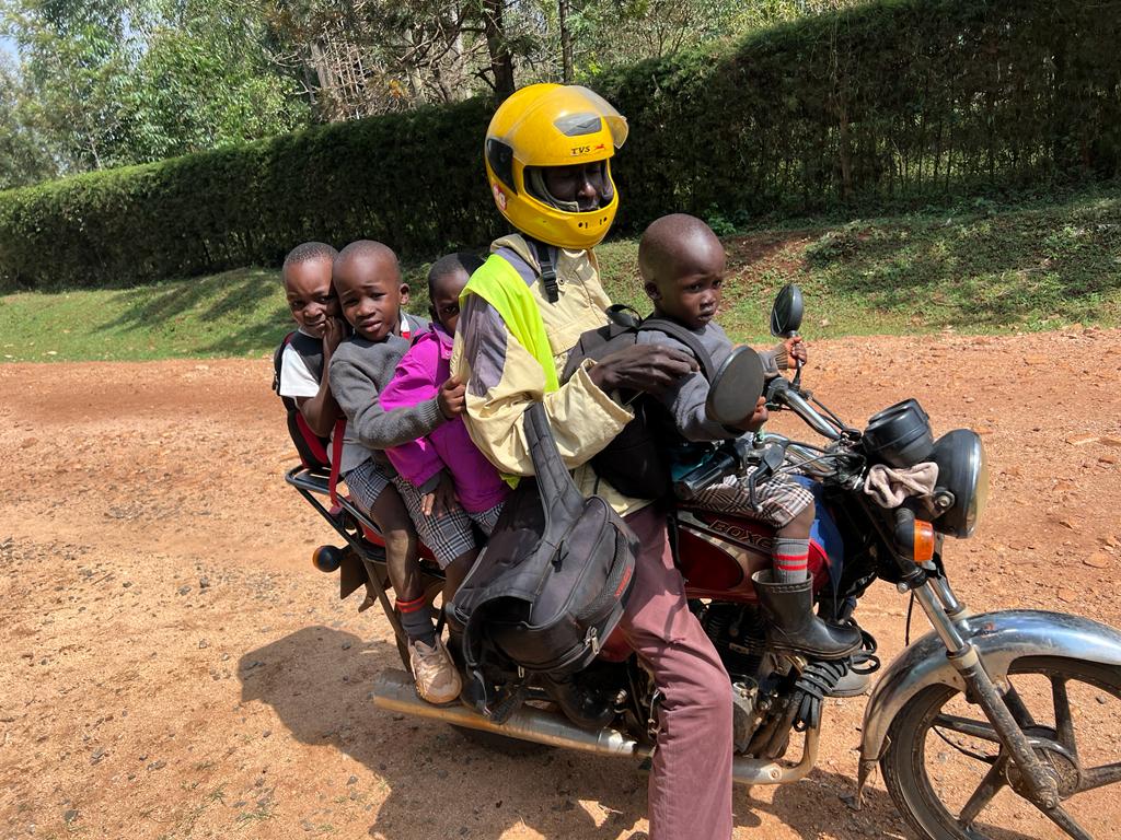 Our students have been performing well and word is spreading around the village and beyond. Accordingly, we are now attracting students from further away to our school. Since we do not have a school bus, these children are transported to and from school on motorcycles as seen here below.